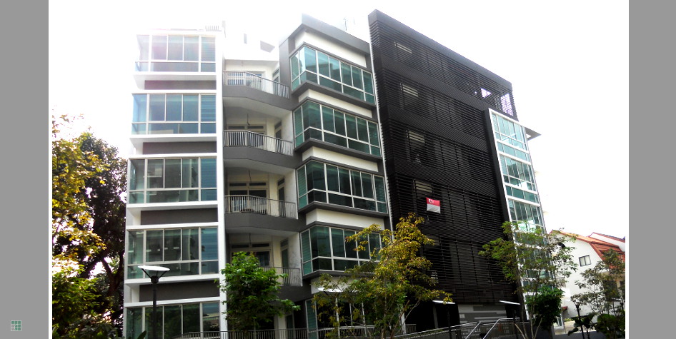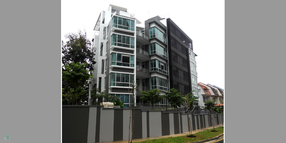 Jade Garden is a freehold development located along Robin Road. The five-storey-plus-attic apartment building expresses a stylish contemporary aesthetic and possesses a well-balanced windows-to-walls ratio resulting in interior spaces that are well-ventilated and shielded from the sun. The asymmetrical 12 units were designed in response to the site shape and a big preserved tree requested for conservation by National Parks. The units in the right-wing follow an angled corner floor plan with southeast-facing balconies and the units in the left-wing follow a straight rectangular plan with east-facing balconies. Facilities include a barbeque area, swimming pool, a cosy garden and a basement car park.