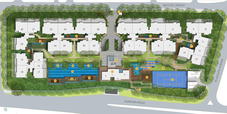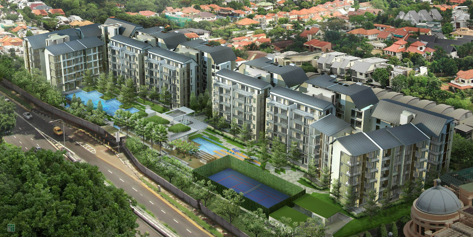 Drawing its inspiration from the prestigious Glyndebourne Opera Festival held in East Sussex England, the Glyndebourne is a prestigious condominium of 150 units at Bukit Timah and is no less exquisite. Home arrival is heralded by the lush greeting from a majestic avenue of angsana trees. Nestled within an English garden landscape with lush flora and verdant greenery, and four thematic courtyards, the modern interpretation of colonial architecture exudes classical luxury and timeless appeal. Each unit is carefully designed to offer spacious, comfortable and functional living, with large balconies overlooking the peaceful neighbourhood. The long tranquil lap pool with orchid motif is a main highlight, and is accompanied by exclusive aqua jet seats, aqua jet beds, wading pools and bubbling pools, covered cabanas set against trimmed hedge walls which provides for relaxation in the private sanctuary.