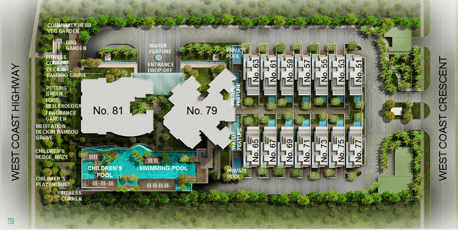 Situated along the serene west coast residential enclave in between the beautiful views of the sea and the relaxing greenery of Clementi woods, the Vision is a unique 99-year leasehold luxury development comprising a combination of two high-rise towers with 281 apartments, and 14 exclusively designed premier 3-storeys plus roof strata terrace houses. It is a majestic creation with magnificent and posh fittings on par with other condominiums located in the upscale residential districts of Singapore. Besides the Sky Gym for fitness and the Sky Serenity for spa and massage, the crown jewel of the development is the glittering Sky Paragon clubhouse sitting on the top-most floor of one of two tower blocks. This clubhouse offers breathtaking panoramic views throughout the day, and comes fitted with plush hotel-styled lounge and bar facilities for par excellent night-time entertainment. When illuminated at night, the clubhouse should sparkle like a large diamond enhanced by the criss-crossed diamond frontage.