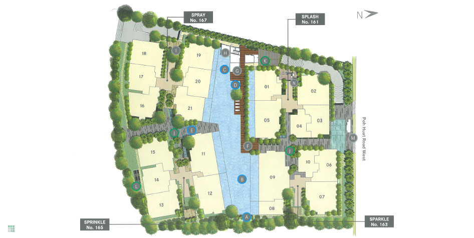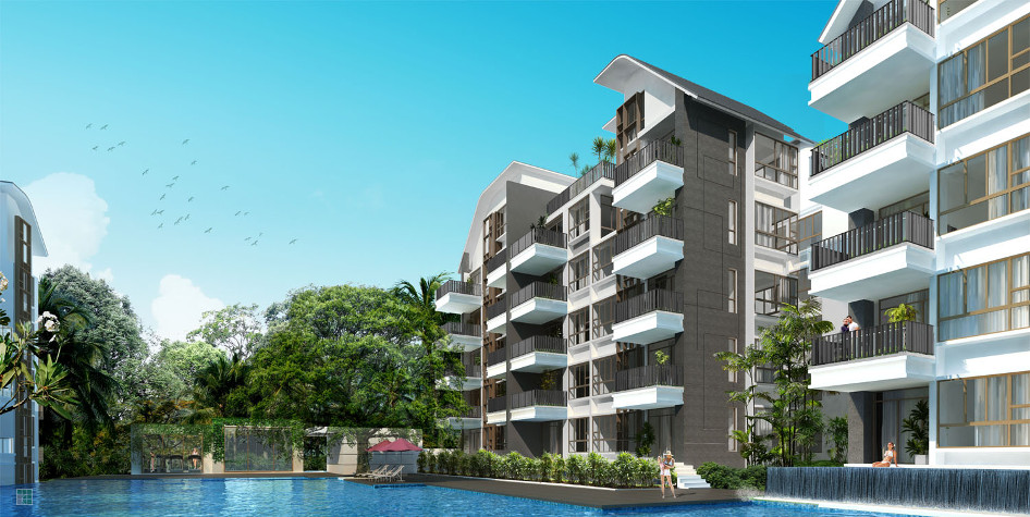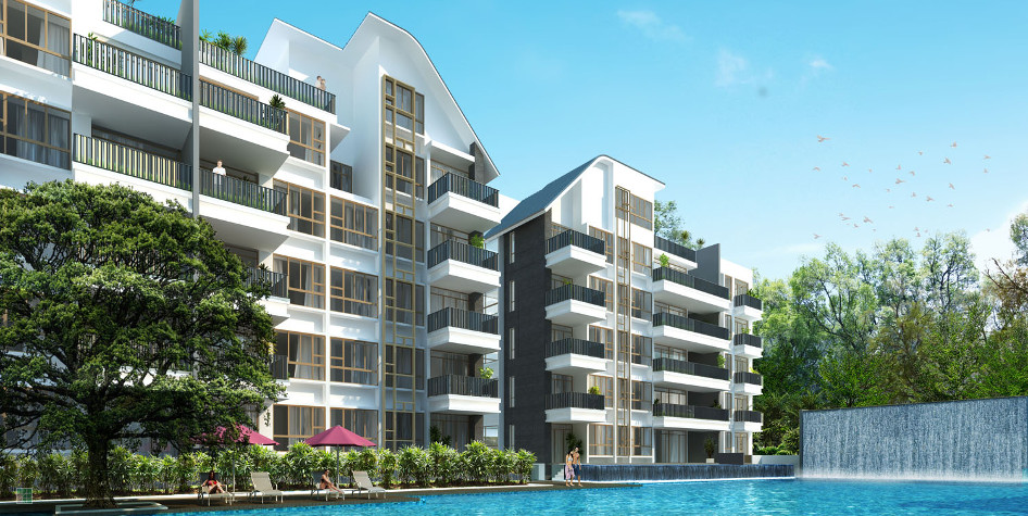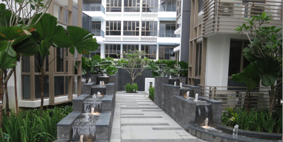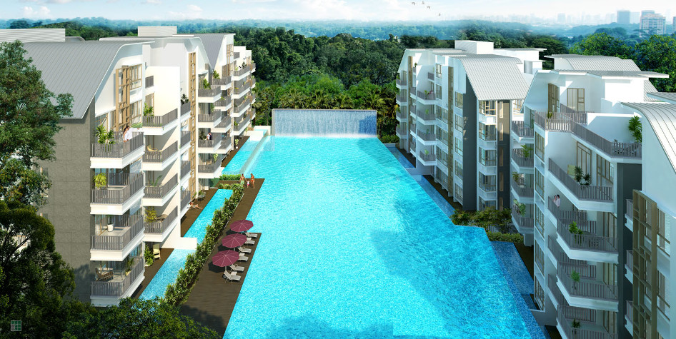 This freehold development is built around the concept of a water-themed sanctuary and is built on top of elevated terrain. It comprises 4-blocks of residential buildings with open roof terraces infused with a modern design aesthetic. Each of the 103 units provides for spacious living and comes equipped with modern furnishings and fittings providing the essence of comfort. The landscape is graced with locally cultivated plants and flowers, its main walkways lined with trees, pebbled ponds and soothing water features. A bubbling fountain greets visitors beyond the main courtyard, while the main facility highlights- the swimming pool, jacuzzi alcove and the namesake flowing waterline wall form the centrepiece of the development.