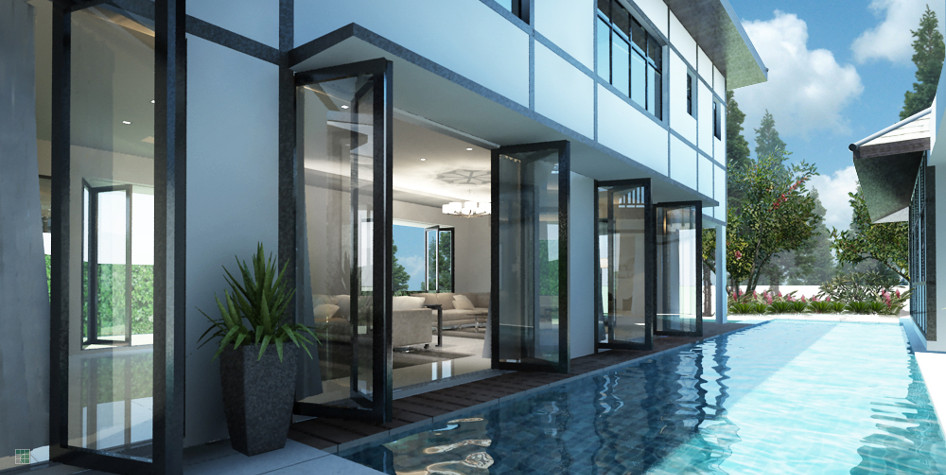 Side by side on Cable Road are two vastly different houses that on first sight are united only by their simple, delineated grille gates. One a sophisticated glass and concrete cocktail, the other resembling an old colonial whiskey steeped with character - but both echoing a clean and airy aesthetic with large floor to ceiling windows gracing the living areas. 5 other bungalows exist in the heart of Cable Road, all further united by luxuriously kitted bathrooms and polished kitchens, with the younger ones getting a trendier splash of colour to the more conservative approach applied in the conserved house. Welcoming terraces line the pools, bringing to mind an old clubhouse or swanky bar.