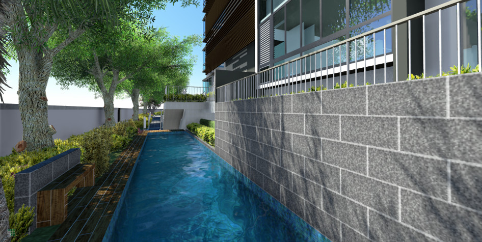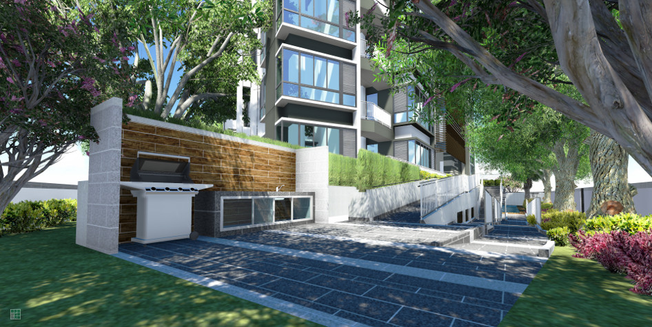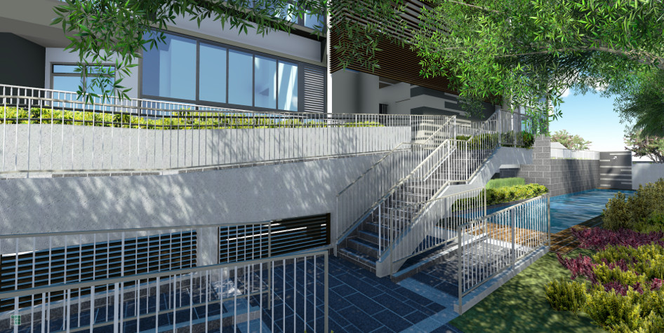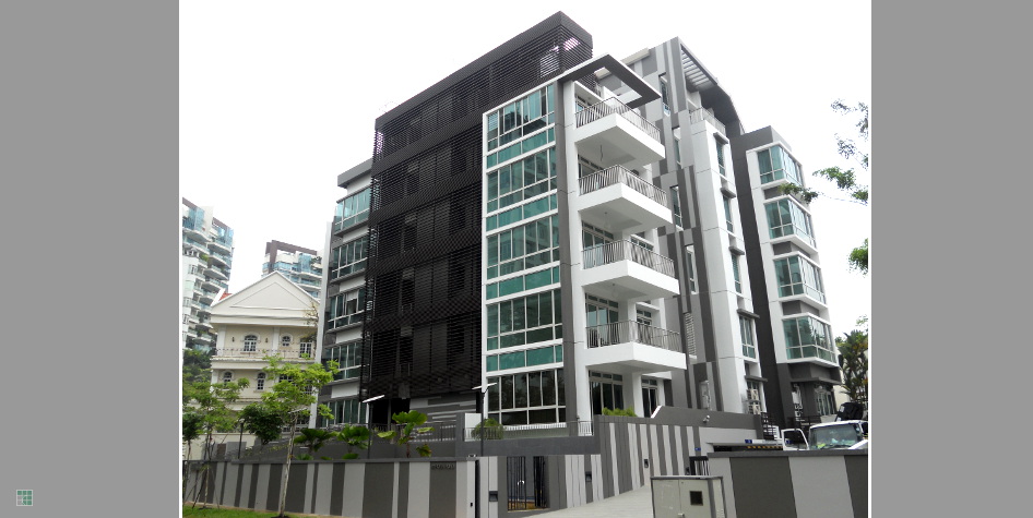 Jade Garden is a freehold development located along Robin Road. The five-storey-plus-attic apartment building expresses a stylish contemporary aesthetic and possesses a well-balanced windows-to-walls ratio resulting in interior spaces that are well-ventilated and shielded from the sun. The asymmetrical 12 units were designed in response to the site shape and a big preserved tree requested for conservation by National Parks. The units in the right-wing follow an angled corner floor plan with southeast-facing balconies and the units in the left-wing follow a straight rectangular plan with east-facing balconies. Facilities include a barbeque area, swimming pool, a cosy garden and a basement car park.