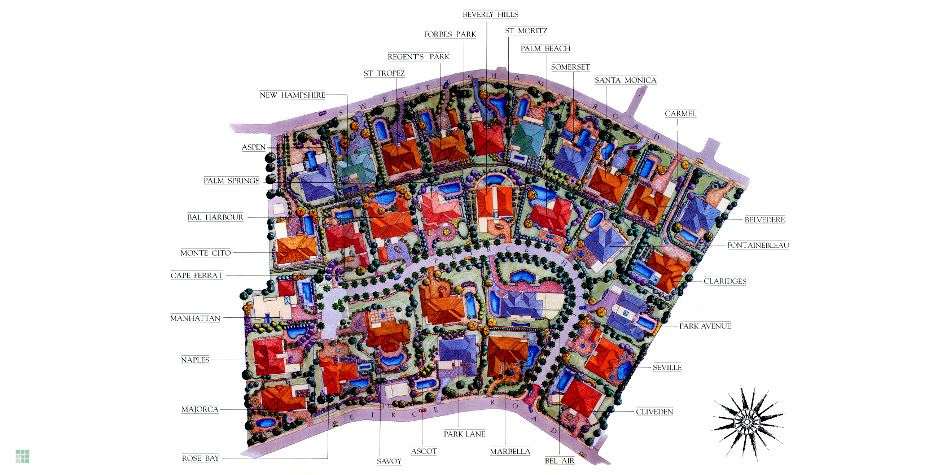 Peirce Villas is an exclusive collection of 30 individually designed boutique bungalows, each expressing distinctive architectural features. Inspiration is drawn from all corners of the globe - from Savoy to Seville, Marbella to Manhattan - no two units are similar except for their aristocratic appeal, incomparable elegance and exquisite beauty, of simple luxurious living and spectacular expanse.