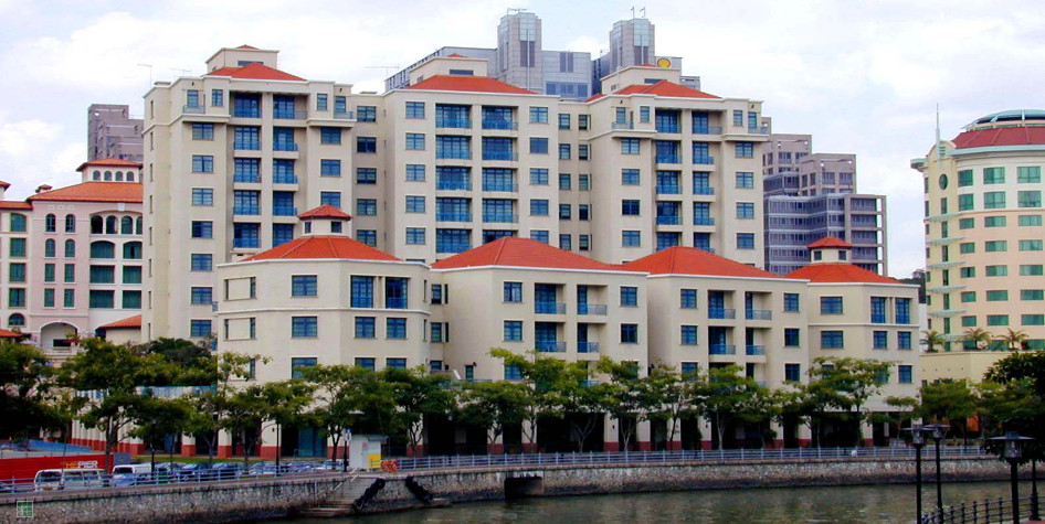 Riverside View is a 99-year leasehold mixed development with 72 residential units and shop/restaurant units on the first storey situated next to the Singapore River, at 30 Robertson Quay. The residential units are located within a 4-storey low-rise and a 10-storey high-rise residential building possessing a neat symmetrical design of boxy blue-panel windows and balconies that overlook views of the river. The building is topped out by orange pyramid-shaped roofs and "cosy attics" which protrude from the rooftops.
